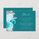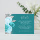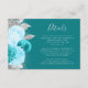Lämnat kant i eleganten har ett kort för modern detaljrikedom i bröllop med en blommigt för turkospolning som är arrangemang med faux silver glitter. Rubriken visas i handskriftsskriptet silver grått, med texten anpassade nedanför i typsnittet, på en turkobakgrunden. Baksidan är solid turkos.