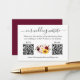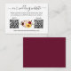 Det moderna minimalistiska kortet för enkelt hölje för Bröllop-webbplats med QR-koden innehåller Blommigt för vattenfärg. Burgundy ro, rosa ros, röd ros, solblommor och botaniskt grönt. Lägg till dina 2 QR-meddelanden - OSA och Bröllop. Snyggt Calligraphy Script. Burgundy Tillbaka.