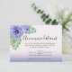 Med det här kortet för bröllop finns en blommigt med lila vattenfärg som är accentuerad med grönt löv. Den vackra bilden finns i det övre lämnat hörnet och bakgrunden är en lila övertoning. Med anpassningsbar kan du lägga till information om inkvarteringar under bröllop.