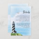 Kortet för detaljer om sjömanteln bröllop innehåller en vattenfärgsscen med ett svart och vitt spiral-fyr som tittar över det blå havet och himlar, med fiskmås som flyger över, med textorienterad höger och modernt penselskript. Om du vill ha matchande produkter kan du gå till samlingen eller kontakta mig via Zazzle-Chattan för ytterligare produkter eller designsvagheter.
