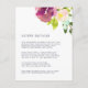 Designat för att matcha vår inbjudan till Vibrant Bloom-bröllopet, har dessa kort för blommigt av elegant en bukett av vattenfärgen ro och peonier i färgstarka, rik nyanser av violett lila, rosa och grönt. Vilka uppgifter ska ingå i en bröllopsinbjudan? Ta hänsyn till information som hotellrum, gruppkoder, transport, anvisningar, välkomstmottagningsinformation och bröllop webbplats-URL. Du kan till och med överföra en karta till motsatt sida med funktionen Anpassa.