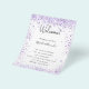 Observera att detta program är pappert och mycket tunt. Kuvert ingår inte. Om du vill ha mer omfattande inbjudningar (samma design) kan du besöka vår butik. Ett modernt program, elegant bröllop, tidslinje. En vit bakgrund som dekoreras med violett, lavender färgad faux glitter damm. Anpassa och lägg till information om namn och bröllop. Svart färgad brev. Om du har mer text kan du minska radavståndet.