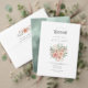En unik layout, dekorativt typsnitt för contemporaryn, en delikat, blommigt bouquet i skuggor av rosa och mjuk grönt på baksidan och en vacker, vattenfärgad framsida är allt som behövs för att göra detta kort för detaljfrågor i bröllop till ett utmärkt val för ett modernt bröllop. Lägg till information, t.ex. researrangemang, hotellplaner eller andra logiplaner och webbplats adress med hjälp av den angivna mallen. Sök i ID654 om du vill se den fullständiga uppsättningen med matchande produkter.