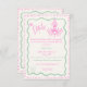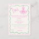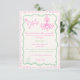 Trendiget hand plockade stil illustrerade detaljerna i med ett skyddshölje för bröllop som har en klocka och en ljuskälla. Den visuella och snabba utformningen omfattar handskrivna teckensnitt och firande-dockor. Rosa och grönt färg för den klassiska men moderna stationära bröllop.