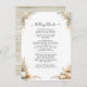 BOHO Cottagecore Aesthetic stil bröllopsinbjudan för gäster utanför staden. Elegant, vattenfärg målade vita och orange pumpor med vildblommor från hösten fält och blommar från färg löv. Baksidan har en lätt, rustik träbakgrund. Vi kan ändra på det för ett enkelt färg. Konstverk som är grafiskt designade av internationellt licensierad konstnär och formgivare, Audrey Jeanne Roberts©