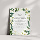 Designat att samordna med vår insamling i Alabaster bröllop, är det här botaniska informationskortet och gästkortet för blommigt i färsk grönt ett gräns av grönska, lövblommor och vita blommor som omger dina uppgifter om nyckel bröllop, t.ex. hotellrum, mottagningsinformation, webbplats med mera. Lägg till anpassningsbarna med hjälp av fält och använda Anpassa för att justera typsnitt, storlekar och avstånd.