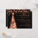 Information/informationskort för elegant & Festive Julafton Träd Ro Guld, med party adress och instruktioner, Bröllop glitter ljus Julgran och modernt typografiskt skript.