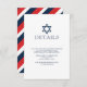 Pub Mitzvah-OSA kort med marin blå och röd stjärna som skapar en underbar brännpunkt på contemporaryns osa. Baksidan har marin blå, vit och röd rand. Anpassa färg på det här responskortet så att det passar dina behov för din pojke att komma till åldersceremonin och se det högerna bort. Om du kärlek detta Pub och Bat mitzvah detaljkort och vill köpa samordningskort, gå till VG Inbjudan på Zazzle