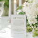 Ett förfinat bröllop-inmatningskort med mjuk grönt-serif-typografi och elegant-skriptaccenter. Kortet innehåller utrymme för viktig gästinformation, t.ex. logi, transport och adresskod. Designad för att komplettera formella utomhusevenemang i bröllop, firande eller klassiska sommararrangemang. Koordinater med Iris Wedding bjudande Collection - se fullt för matchande kontorsmaterial.