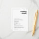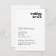 Enkla, stilrena bröllopsdetaljer i en modern minimalistisk designstil med en retrotypografi i klassiskt svart och vitt skriven i en informell avslappnad stil. Texten kan enkelt anpassas för en unik enastående design för din speciella dag. Om du behöver hjälp med att anpassa denna produkt, vänligen kontakta mig med hjälp av meddelandeknappen nedan och jag hjälper dig gärna.