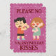 Kolla in det här roliga och söta Alla hjärtans dag-kortet! Det har en tecknad illustration av en söt liten pojke som är helt äcklad vid tanken på en puss från en tjej. Det är det perfekta kortet för alla som vill skicka lite skratt och kärlek till sin speciella någon. Kortet lyder: "INGA ALLA HJÄRTANS DAGS-PUSSAR TACK". Du kan lämna meddelandet som det är eller anpassa det med ditt eget speciella meddelande. Det här kortet kan användas till födelsedagar, årsdagar och andra tillfällen.