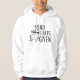 This hoodie is much better than I expected. top quality, true sizing, and really comfy. I was a bit worried that the lettering would be too dark on the navy blue hoodie, but once it arrived it was perfect. Easy to see the words, and the quality of the wording is fabulous. I will be buying more hoodies in future