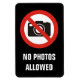 Kameraikon med röd förbjuden cirkel och anpassningsbar med texten "Inga foton tillåtna"