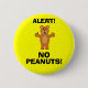 INGA JORDNÖTTER! Jordnötallergin knäppas/emblem. Ha på sig detta vaket och låt folk veta att du inte önskar något som innehåller jordnötter. Tecknaden avbildar av den tittar elaket morra björnen! Text läser "LARMAR - INGA JORDNÖTTER!", Ideal för barn med jordnötallergier.