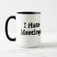 Inget sarkastiskt kontors humor-slogan i förvrängt brev med en röd cirkel och en linje. På andra sidan läser jag Hate Meetings i ett grungligt skrivstil. Bli inte fast i ett möte på jobbet, visa dem hur du känner för verkligen med det roliga ordspråket. Klicka på Anpassa om du vill ändra typsnitt, textstorlek med mera!