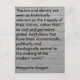 Utdrag ur artikel: Ingen Alibis - Att lära barn om rasism "Rasism och slaveri betraktas som historiskt relevant som tragedin för deras offer, snarare än som omfattande och genomträngande globala institutioner som har varit ekonomiskt, politiskt och ideologiskt centrala för den moderna världens skapar. Om man betänker att rasism till stor del är ett "svart problem", är det viktigt att man i såväl utbildningen som i den offentliga debatten underbarare fokuserar på erfarenheter av och motstånd mot rasism i stället för på orsakerna till och villkor av dess uppkomst. "