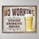 En vintage poster med ett skumglas öl och säger: " Ingen arbetstid under drickstid". En underhållande roligt poster.