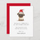 Julkort med en söt teckning av en liten pug med en julhatt, och ditt anpassningsbar-meddelande på framsidan. Röd eller anpassningsbar färg tillbaka.