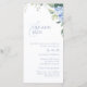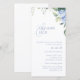 Denna vackra blomstermönstrade hydrangea-platta bröllopsinbjudningskort utstrålar en fräsch, elegant och ungdomlig ton. Framsidan av kortet innehåller inbjudningstext, adress till bröllopswebbplats, bröllopsinformation samt en vacker illustration av akvarellhydrangeor och grönska. Den samtida blåa teckensnittet är modernt och stilrent mot en vit bakgrund. Anpassa denna eleganta och stilfulla bröllopsinbjudan för att göra den till din egen.
