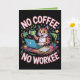 Få din koffeininjektionsberoende vän att le med detta underhållande gratulationskort med texten "No Coffee No Workee". Den lekfulla frasen fångar den heliga sanningen att för riktiga kaffefanatiker händer ingenting produktivt innan den första magiska klunken. Detta kvicka rimmande uttryck betyder helt enkelt att utan kaffe blir det inget gjort. Det talar direkt till alla som fungerar i BC-läge - före kaffe - och förstår att koffein inte är en lyx, utan en nödvändighet.