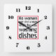 Det är sant! Ingen kvinna sköt en man när han tvättade diskar - som det står på den här köksklockan från Zazzle.