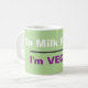 Mugg är särskilt designat för veganen till användan på arbetsplatsen! Budskapet lyder: "Ingen Mjölk, snälla jag är Vegan". Påminn arbetskamrater eller dina vänner om att de inte bör tillsätta mjölk i te eller kaffe! Text är vit och lila på gröntens bakgrund. Bakgrunden färg kan ändras om så önskas. All text är malltext och kan enkelt redigeras till ett valfritt meddelande. Underbara mugg för att köpa din veganvän!