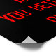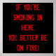 Det är en humoristisk signal att inte röka. Med den ljusröda texten på svart bakgrund är det säkert att man kommer att fånga människors uppmärksamhet och få fram poängen.