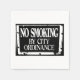Vi presenterar vårt grafiska tecken "No Smoking by City Ordinance", som är ett perfekt i alla utrymmen där man prioriterar att antirökreglerna efterlevs! Den här slående designen har fet, uppmärksam typografi som ger ett tydligt och koncist meddelande: Ingen rök är tillåten enligt stadens stadgar.