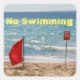 "No Swimming" och Red flagga på stranden Palma de Mallorca - Balearerna, Spanien.