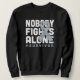 styrka och stå enad med den här utformningen "Ingen slåss mot Ensam" som innehåller ett djärvt grått-band och ett kraftfullt budskap. Designat för att öka medvetenheten om lungcancer och för att överleva är den här skjortan ett kraftfullt sätt att visa stöd, hedra krigare och sprida hopp. Perfekt för medvetandehöjande evenemang, stödgrupper, insamlare eller vardaglig bära. För ingen ska någonsin gå på ensamen.