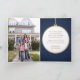 Det finns ingen ställe som hemma för helgdagarna - Skicka snyggt glatt hälsning och två av dina favoriter bilder med det här moderna minimalistfällda helgdag. Text och foton på den här mallen är enkla att anpassa. I marinblått, vitt och guld-designen finns prydnadsämnen som ramar bilder efter eget val och ett personlig-meddelande. (IMAGE PLACEMENT TIP: Ett enkelt sätt att centrera ett foto exakt som du vill är att flytta det till skörd innan du laddar upp det till Zazzle-webbplatsen.) Observera att guld är tryckt på färg, inte metallfolie. Familjen och vännerna kommer att visa elegantens personlig kort i kärlek. Att skicka varm önskemål från ditt hem är perfekt för alla som har vistats hemma på grund av karantän, avstånd social och låsning till följd av koronaviruscovid-19. God jul och Gott nytt år!