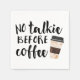 Ljugit ner lagen (morgon) med dessa roliga cocktailservar med texten "No Talkie before Coffee" i svart handskriven stil-typografi. En illustration av detta magiska elixir, kaffet, på en motorväg kopp fullbordar konstruktionen.