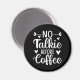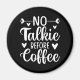 En fin kaffedesign för den som kärlek sitt kaffe i fred har vit text och hjärtan som lyder NO Talkie Före kaffet! Kaffemaskpåsar, mugg, klistermärken, knappar, magneter m.m.