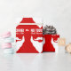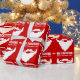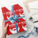 julklapp papper i ljummet rött och vitt. Läser NO TOUCHING fram till 25 december, roligt fet jultomts/pappa jul berömd skägg och ett grafiskt mönster med mönster från jultryck. Grafik och design av Sarah Trett.