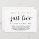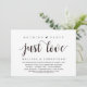 Meddela dig lyckligt i stil med vårt moderna manusdesignkort för bröllop elopement-festinbjudan. Vårt inbjudningskort är lyckligtvis alltid, inget Finare, just Kärlek, idealiskt för par som har beslutat sig för att fly och som vill stå värd för ett party för att fira sin union. Med sin sofistikerade men lekfulla utformning kommer inbjudan säkert att ange tonen för en händelse som inte kan glömmas bort. Inbjudningskortet har en minimalistisk design med ett svartvitt schema, vilket gör att du får lite elegans i firande. Designad av TeeshaDerrick