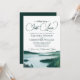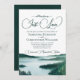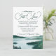 Den här roliga bröllopsinbjudan har en vattenfärgsscen i Sjö Tahoe omgiven av grönt gräs träd med berg i bakgrunden. Rubriken lyder: Ingenting Finare, Just Kärlek, och är skriven i elegantens skript. Baksidan är en marmorerad djup grönt färg. Whimiscal, romantic och elegant, inbjudan är perfekt för ett utomhusbröllop.