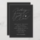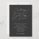 Modern typ av bröllopsinbjudan till typografi med ett handskript som säger "ingenting finare just kärlek" i vitt mot en grått med kol. Enkel och minimalistisk utformning.