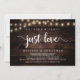 Vackert inget Finare, Just Kärlek, Bröllop Elopement annonsbrev/inbjudningskort, i Rustic farm mörk wood bakgrund, String Ljus design. Det här är perfekt för ditt bröllopsmottagande och party efter bröllop firande.