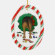 Tillfoga humorn till din julgran, med denna spårhundjulprydnad. En stygg spårhund som ha på sig som tuggas upp kran, har brutet några prydnadar och ätit hans strumpastuffers.