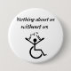 Handikapprättigheterslogan och logotyp. Ingenting om oss utan oss! Främjar självständighet och själv-determinism, såväl som motsättande behandlas nedlåtande eller att tyckas synd om.