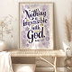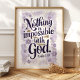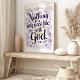 Omfamna kraften i tron med detta vackra typografiska konsttryck med den inspirerande versen från Lukasevangeliet 1:37. Den eleganta skriften i djup lila, prydd med ömtåliga akvarellblommor i nyanser av lavendel och guld, skapar en lugn och uppbyggande design. Perfekt för att tillföra en touch av andlig inspiration till din hemmiljö eller kontorsdekor.
