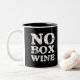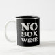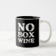 Precis något att säga inte till en av man mest heinous uppfinningar…, Boxas vin! Utbilda andra, när du använder vår "inget boxas vin" mugg, som presenterar ett djärvt, denstil stilsorten, ofta rosa och alltid illaluktande. Designen bedrövas för en vintagelook. Gör den perfekta gåvan för vinälskare i ditt liv.