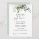 Bröllopsinbjudan med texten "inget fancy, bara kärlek" med vacker akvarellgrönska och enkel kalligrafi med matchande bakgrundsfärg. För att få tillgång till avancerade redigeringsverktyg, gå till “ Anpassa” och klicka sedan på "länken för ytterligare anpassning".