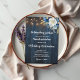 En inbjudan till elegant bröllop med elegant-kalligrafi som kompletteras med underbart blått trä, trädgårdsstrå ljus och vit blå blommigt med guld glitter. Du kan anpassa det här kortet med information om Bröllop.