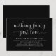 Markera början på din evighet med elegans med hjälp av vår contemporary, vackra, vita, svarta, inbjudningskortet bröllop-elopement firande, "ingenting finare, bara kärlek". Perfekt för par att utvidga sitt glada tillfälle, denna inbjudan är sofistikerad med en antydan om spelaktsamhet, som anger en minnesvärd händelse. Med ett modernt tema för skriptdesign utan tidslängd lägger det till en lite förfinad charm till dina festligheter. Den här inbjudan är skapad av TeeshaDerrick och lovar att på ett klokt sätt fånga din kärlek-historia.