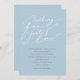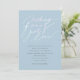 Modern blankett för inbjudan till giftermål för typografi med ett handskript som säger "ingenting finare just kärlek" i söt pastellregnbåge färg. Bakgrunden är dammig blå. Övriga upplysningar om bröllop är mycket enkla och minimalistiska.
