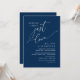 Vacker modern vacker casual minimalistisk, marinblå scriptfont, bröllopsannonsering för flyktälskande par, middag och festfirande, bröllopsinbjudan (Inget fint, bara kärlek). Detta är perfekt för din bröllopsfest och efterbröllopsfirande. Lägg till dina detaljer i matchande teckensnitt / bokstäver.