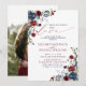 Skapa den perfekta inbjudan för ett avslappnat bröllop eller efterbröllopsfirande med denna moderna, trendiga, marinblå och vinröda akvarellblommiga design med handskriven typsnitt. Baksidan av inbjudan visar ert favoritförlovningsfoto. Kontakta formgivare för matchande produkter. Tack så jättemycket för att ni stöttar vår lilla verksamhet, vi uppskattar det verkligen!