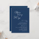 Meddela elegant ditt lyckliga slut med vårt moderna och klassiska bröllopsinbjudningskort för en intim firande middag, med kortets titel "Inget fancy, bara kärlek". Skräddarsytt för par som fortsätter sin kärlekshistoria, finner denna inbjudan en perfekt balans mellan sofistikation och charm, och sätter scenen för en oförytterlig händelse. Med en modern samtida skriptdesign, vit text på marinblå bakgrund, tillför det en tidlös elegans till er speciella dag, och denna inbjudan är ett stilfullt uttryck för er varaktiga kärlek. Detta inbjudningskort kan modifieras för att passa era krav på bröllopsbrunch, lunch, middag eller fest.