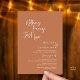 Meddela elegant din lyckliga framtid med vårt moderna och klassiska bröllopsinbjudningskort för en intim vigselceremoni och middagsfirande, med kortets titel "Inget fancy, bara kärlek". Skräddarsytt för par som fortsätter sin kärlekshistoria, finner denna inbjudan en perfekt balans mellan sofistikation och charm, och sätter scenen för en oförytterlig händelse. Med en modern samtida typsnittsdesign, vit text på koppar-terrakotta brun bakgrund, tillför den en tidlös elegans till er speciella dag, och denna inbjudan är ett stilfullt uttryck för er varaktiga kärlek. Detta inbjudningskort kan modifieras för att passa era krav på bröllopsbrunch, lunch, middag eller fest.